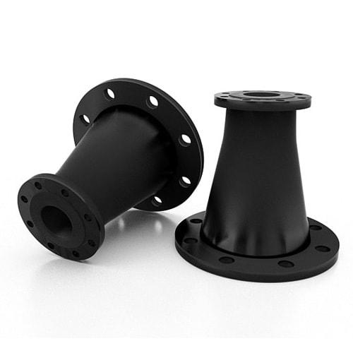 Переходы фланцевые могут изготавливаться из стали различных марок 20, 09Г2С, 15Х5М, 12Х18Н10Т и др. Переходы фланцевые концентрические имеют форму усеченного конуса и применяются для фланцевого соединения труб по главной оси симметрии трубопровода, в том числе в вертикальных трубопроводах и в трубопроводах на подвесных опорах.